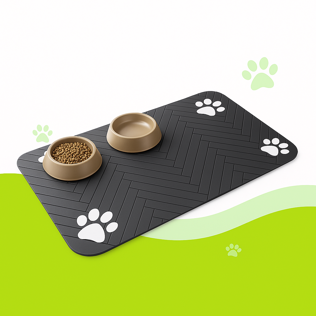 Zadbaj o czystość wokół miski swojego pupila! Łapko™ Mata Pod Miski to wyjątkowe rozwiązanie, które chroni podłogę przed wodą, resztkami jedzenia i zabrudzeniami, zapewniając czystość i komfort podczas karmienia.